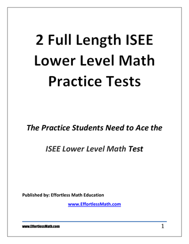 2 Full Length Isee Lower Level Math Practice Tests Tpt